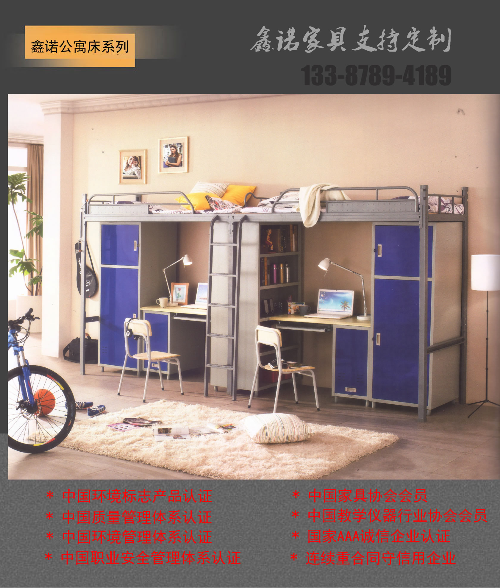 • 大連公寓床,大連高低床,大連鐵架床, 二連公寓床(長梯+木質(zhì)柜體+直臺面+中衣柜)